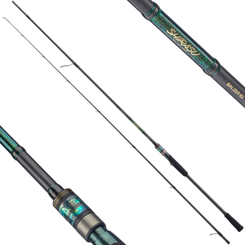 Unsere neuen Shirasu Ruten bestechen nicht nur durch die schnellen, ausgewogenen Blanks, sondern auch durch ihre hervorragende Optik. Die Zustellschraube der Rollenhalter ist mit einem Perlmutteffekt veredelt, so dass jede Rute ein Unikat ist. Der Blank vor dem Griff ist mit einer hochwertigen Stardust Lackierung versehen, die perfekt mit dem Perlmutteffekt harmoniert. Teile der Rute bestehen aus gewebter Kohlefaser. Die Superior Carbon Blanks verfügen über sehr schnelle Aktionen, sogenannte „Super Fast Taper Action“.